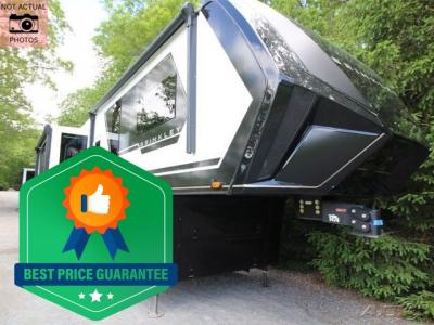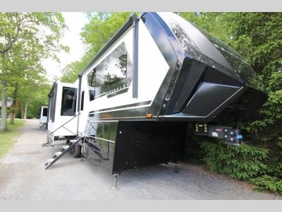 Sleeps 9 Slides 3 Length 37 ft 11 in Ext Width 8 ft 5 in Ext Height 13 ft 4 in Hitch Weight 3150 lbs GVWR 22000 lbs Dry Weight 17300 lbs Fresh Water Capacity 150 gals Grey Water Capacity 156 gals Black Water Capacity 52 gals Tire Size 215/75 R17.5 Furnace BTU 35000 btu Fuel Capacity 30 gals Number Of Bunks 1 Available Beds King Refrigerator Type GE Energy Star with Ice Maker and Filtered Water Refrigerator Size 19 cu ft Convection Cooking Yes Cooktop Burners 4 Shower Size 30" x 42" Number of Awnings 4 Axle Weight 7000 lbs Garage Size 6 ft 6 in LP Tank Capacity 30 lbs Water Heater Type Tankless TV Info LR 65" Smart TV, Garage 43" Smart TV, BR 32" Smart TV Awning Info 6'6", 11' & 15' Power w/Neon Lights Axle Count 3 Washer/Dryer Available Yes Number of LP Tanks 2 Shower Type Standard Electrical Service 50 amp Similar Toy Hauler Fifth Wheel Floorplans