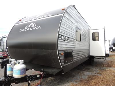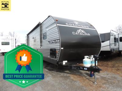 With any Catalina Summit Series 8 by Coachmen you will enjoy an affordable travel trailer packed with at-home comforts! The solid construction includes a Norco electromagnetic powder coated chassis, a seamless Alpha roof membrane, and full length frame outriggers for maximum support and durability. EZ lube axles with leaf spring suspension and self adjusting brakes provide smooth towing from home to campground, and the premium exterior graphics package is sure to turn heads as you travel down the highway. You will love the features included, such as a JBL Aura Cube media center, magnetic baggage door latches, 4,000 lumen interior touch lighting, and the list goes on!