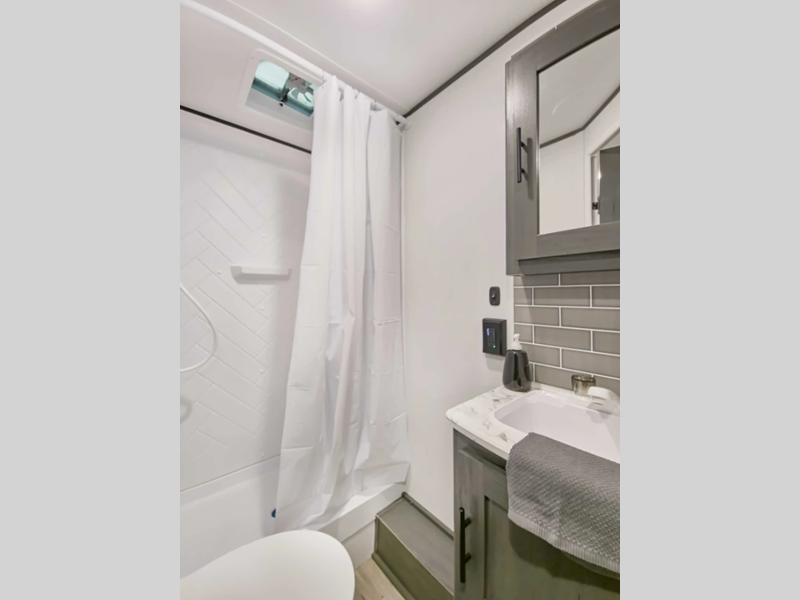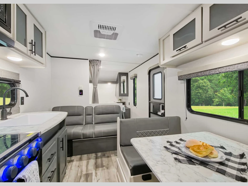 Sleeps 3 Slides 1 Length 31 ft Ext Height 11 ft Hitch Weight 585 lbs Dry Weight 5560 lbs Cargo Capacity 2025 lbs Fresh Water Capacity 44 gals Grey Water Capacity 78 gals Black Water Capacity 28 gals Furnace BTU 30000 btu Available Beds Queen Refrigerator Size 10 cu ft Cooktop Burners 3 Number of Awnings 1 Water Heater Type Tankless On Demand AC BTU 15000 btu Awning Info 14' Axle Count 2 Shower Type Standard Solar Wattage 100 watts Similar Floorplans