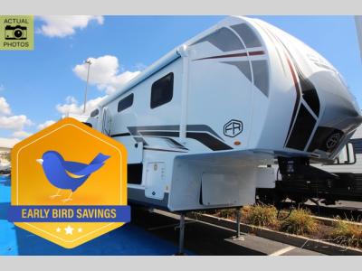 With any Cardinal fifth wheel by Forest River, you will enjoy affordable luxury at every turn. These models are constructed with residential fiberglass insulation in the roof and floor, a heated and enclosed underbelly armor, and a vacuum bonded, welded aluminum structure for added strength and durability. You will also find seamless roto-cast holding tanks, an outdoor shower, and 4-point auto leveling for quick and easy setup. There are carpet-free living spaces, residential backsplash, motion lighting throughout, and many more comforts!