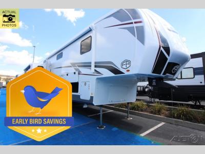 With any Cardinal fifth wheel by Forest River, you will enjoy affordable luxury at every turn. These models are constructed with residential fiberglass insulation in the roof and floor, a heated and enclosed underbelly armor, and a vacuum bonded, welded aluminum structure for added strength and durability. You will also find seamless roto-cast holding tanks, an outdoor shower, and 4-point auto leveling for quick and easy setup. There are carpet-free living spaces, residential backsplash, motion lighting throughout, and many more comforts!