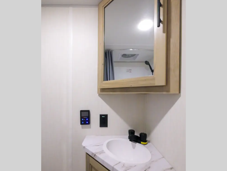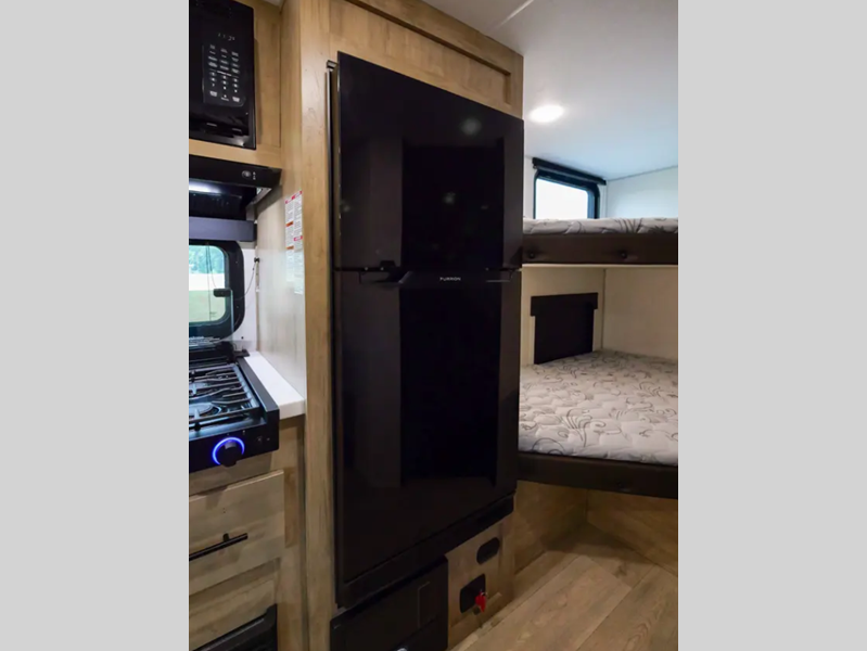 Sleeps 3 Length 21 ft 10 in Ext Width 7 ft 6 in Ext Height 10 ft 6 in Hitch Weight 404 lbs GVWR 5504 lbs Dry Weight 3861 lbs Cargo Capacity 1643 lbs Fresh Water Capacity 26 gals Grey Water Capacity 28 gals Black Water Capacity 28 gals Tire Size 14" Furnace BTU 20000 btu Available Beds Queen Refrigerator Type 12V High Efficiency Residential w/Travel Lock Number of Awnings 1 Water Heater Type Tankless AC BTU 13500 btu Awning Info 12' Power with LED Light Strip Axle Count 1 Shower Type Tub/Shower Combo Similar Floorplans