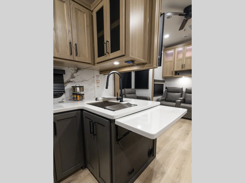 Each model is suited to meet the needs of your active family with outstanding features to enhance your camping experience. There is a generous amount of storage space, so you can bring the extras along too, and you'll appreciate the complete composite wall construction and 6-sided full aluminum frame for added durability. The solid surface kitchen countertops will have you feeling right at home, along with soft close hidden hinge cabinet hinges, lino flooring in the slide outs, and many more comforts.Â