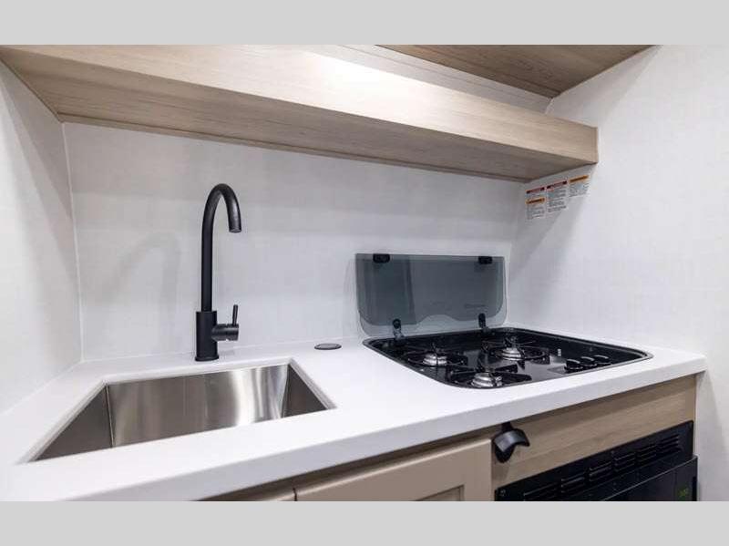 Sleeps 3 Slides 1 Length 20 ft 2 in Ext Width 7 ft 8 in Ext Height 10 ft 1 in Hitch Weight 440 lbs Dry Weight 3590 lbs Cargo Capacity 850 lbs Fresh Water Capacity 31 gals Grey Water Capacity 27 gals Black Water Capacity 27 gals Furnace BTU 20000 btu Available Beds Queen Refrigerator Type 12V Convection Cooking Yes Cooktop Burners 3 Number of Awnings 1 LP Tank Capacity 20 lbs Water Heater Type Gas/Electric AC BTU 13500 btu TV Info 12V Smart TV Awning Info 11' Power Axle Count 1 Number of LP Tanks 2 Shower Type Radius Solar Wattage 200 watts -