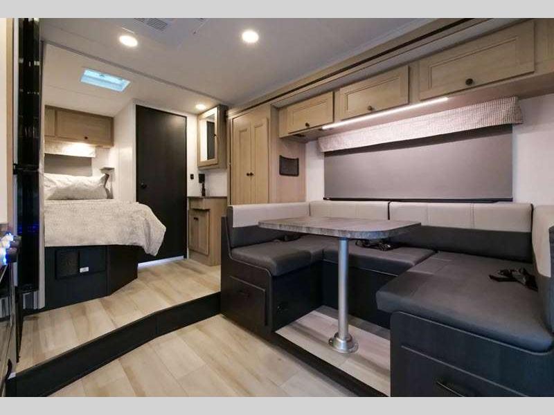 Sleeps 5 Slides 1 Length 23 ft 10 in Ext Width 8 ft 5 in Ext Height 11 ft 3 in Hitch Weight 5000 lbs GVWR 12500 lbs Fresh Water Capacity 35 gals Grey Water Capacity 32 gals Black Water Capacity 27 gals Furnace BTU 30000 btu Generator 4.0KW Gas Fuel Type Gas Chassis Ford E350 Fuel Capacity 55 gals Wheelbase 158 in Number Of Bunks 1 Available Beds Queen Refrigerator Type 12V Refrigerator Size 10.7 cu ft Convection Cooking Yes Cooktop Burners 3 Shower Size 24" x 32" Number of Awnings 1 Axle Weight Front 5000 lbs Axle Weight Rear 8500 lbs LP Tank Capacity 41 lbs Water Heater Capacity 6 gal Water Heater Type DSI Gas/Electric AC BTU 13500 btu TV Info LR 12V LED TV Awning Info 14' Power with LED Lights Gross Combined Weight 18000 lbs Shower Type Standard Electrical Service 30 amp Similar Floorplans