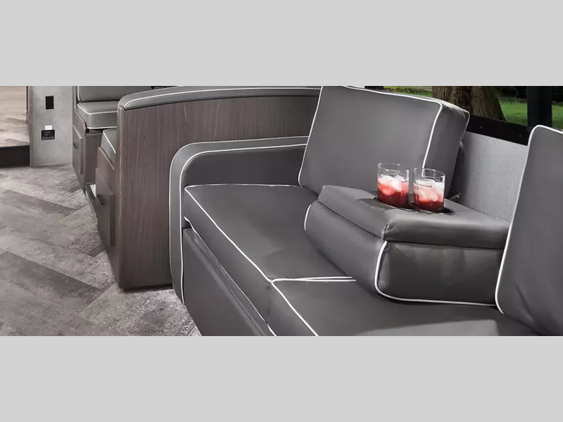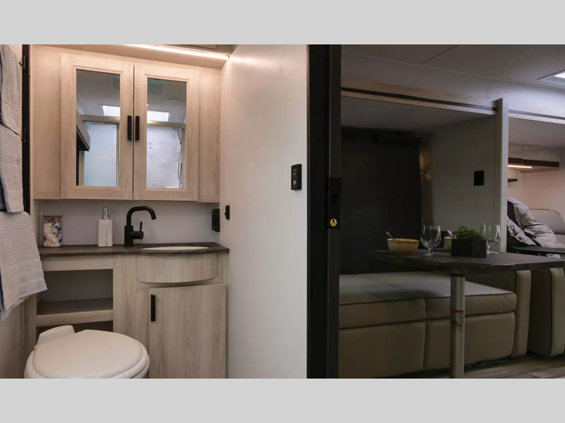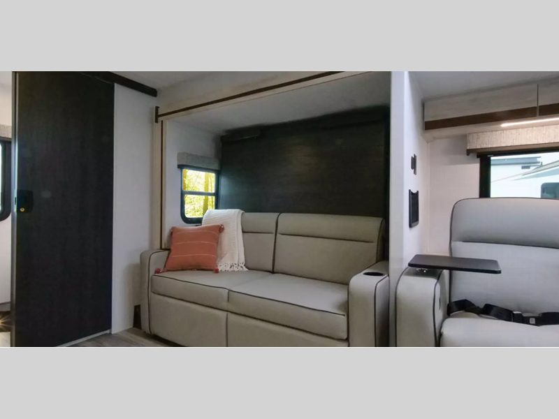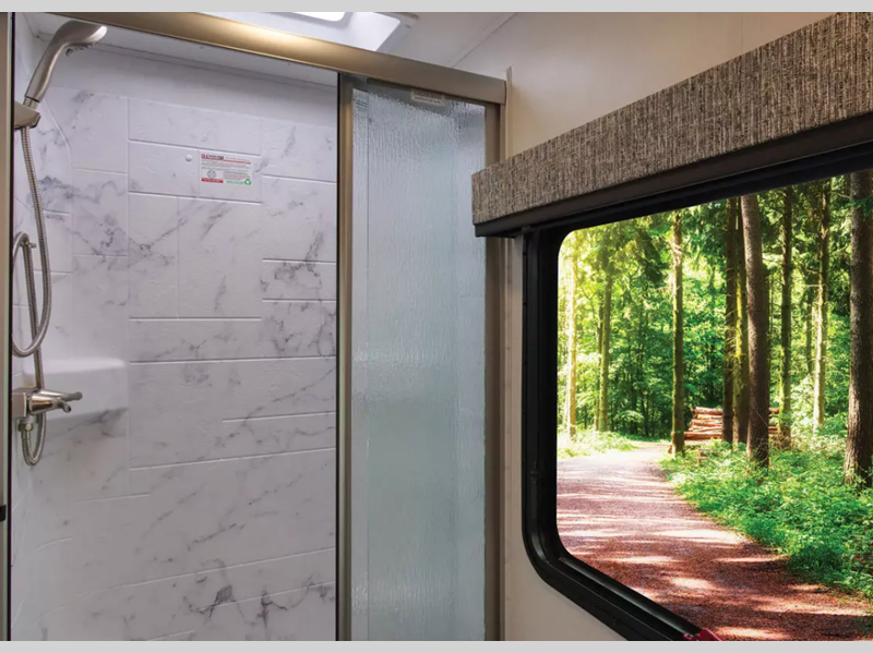 Some of the top features include a fiberglass laminated roof, a Winegard Air 360+ digital antenna to stay connected as you camp, plus a 10.7 cu. ft. 12V refrigerator for plenty of food storage. There is also an outside shower, a power awning with LED lights, and an optional 12V solar charging system for off-grid capabilities! Interior comforts include black out roller shades, an oxygen-infused shower head, soft touch self-closing drawer guides, and so much more!