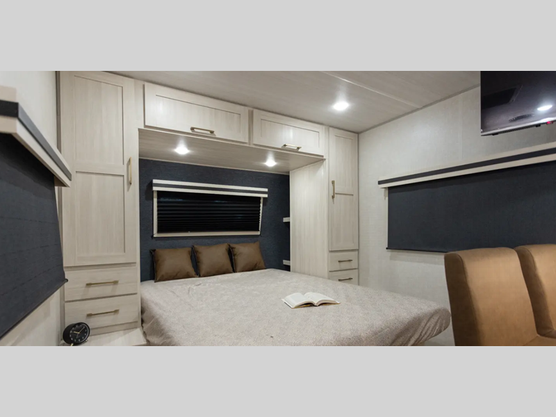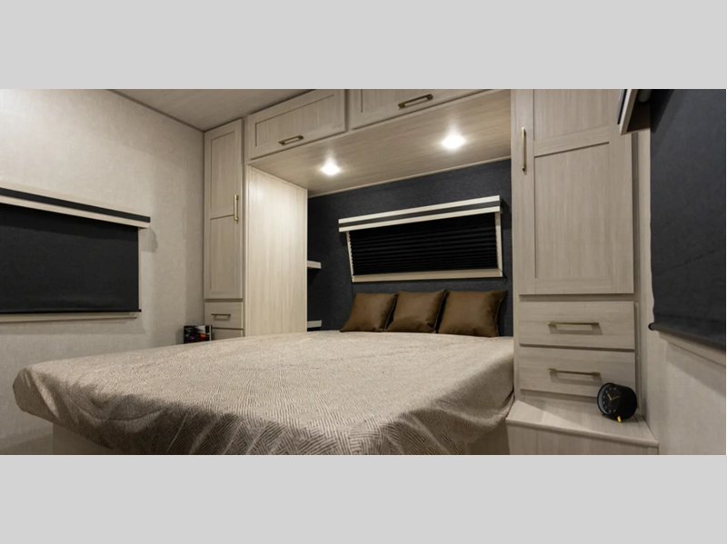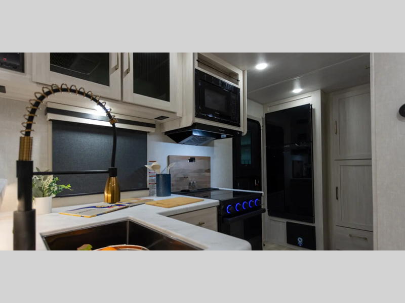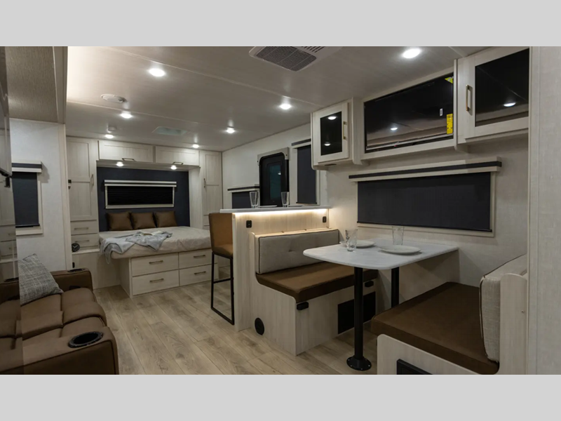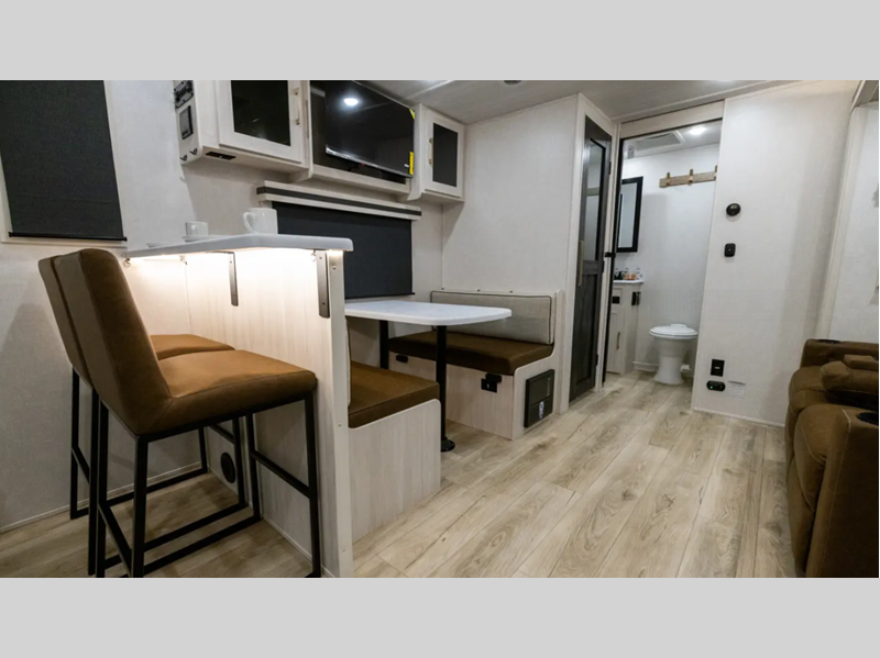 Sleeps 2 Slides 1 Length 30 ft Ext Width 8 ft Ext Height 11 ft 3 in Hitch Weight 705 lbs Dry Weight 6108 lbs Cargo Capacity 1597 lbs Fresh Water Capacity 40 gals Grey Water Capacity 60 gals Black Water Capacity 30 gals Available Beds Queen Refrigerator Type 12V Black Glass Refrigerator Size 10 cu ft Cooktop Burners 3 Number of Awnings 1 Water Heater Type Tankless AC BTU 15000 btu TV Info LR HD TV Awning Info 18' Electric w/LED Light Strip Axle Count 2 Shower Type Standard Similar Floorplans