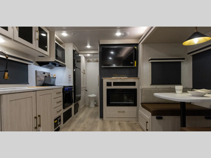Sleeps 5 Slides 1 Length 30 ft Ext Width 8 ft Ext Height 11 ft 3 in Hitch Weight 640 lbs Dry Weight 6078 lbs Cargo Capacity 1500 lbs Fresh Water Capacity 40 gals Grey Water Capacity 60 gals Black Water Capacity 30 gals Available Beds Queen Refrigerator Type 12V Black Glass Refrigerator Size 10 cu ft Cooktop Burners 3 Number of Awnings 1 Water Heater Type Tankless AC BTU 15000 btu TV Info LR HD TV Awning Info Electric w/LED Light Strip Axle Count 2 Shower Type Standard Electrical Service 30 amp Similar Floorplans