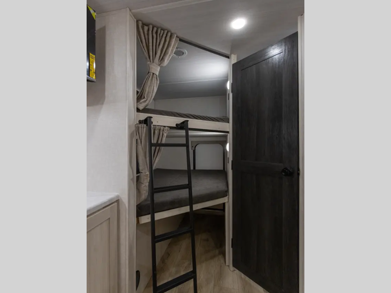 Sleeps 5 Slides 1 Length 23 ft 7 in Ext Width 7 ft 4 in Ext Height 10 ft 9 in Hitch Weight 408 lbs Dry Weight 3777 lbs Cargo Capacity 1831 lbs Fresh Water Capacity 30 gals Grey Water Capacity 30 gals Black Water Capacity 30 gals Number Of Bunks 2 Available Beds Queen Refrigerator Type 12V Black Glass Refrigerator Size 10 cu ft Convection Cooking Yes Cooktop Burners 2 Number of Awnings 1 Water Heater Type Tankless AC BTU 15000 btu TV Info LR HD TV Awning Info 15' Electric w/LED Light Strip Axle Count 1 Shower Type Standard Electrical Service 30 amp Similar Floorplans