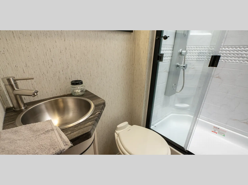 Sleeps 6 Slides 2 Length 34 ft Ext Width 8 ft 6 in Ext Height 12 ft 10 in Hitch Weight 1465 lbs GVWR 13465 lbs Dry Weight 8704 lbs Cargo Capacity 4761 lbs Fresh Water Capacity 102 gals Grey Water Capacity 50 gals Black Water Capacity 50 gals Tire Size 16" Furnace BTU 35000 btu Fuel Capacity 30 gals Number Of Bunks 1 Available Beds King Refrigerator Type 12V Black Glass Residential Style Refrigerator Size 10.7 cu ft Cooktop Burners 3 Number of Awnings 1 Axle Weight 6000 lbs Water Heater Type On Demand Tankless AC BTU 15000 btu TV Info LR LED Flatscreen Awning Info Power w/LED Lights Axle Count 2 Shower Type Standard Electrical Service 50 amp Similar Floorplans