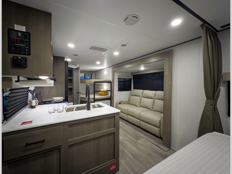 The TPO roof membrane is ultra durable, and the high-density roof insulation meals you can extend your camping season. You will appreciate oversized tank capacities, a power tongue jack, an all-in-one utility center, plus many more exterior conveniences. Step inside to find a deep-seated stainless steel sink, residential countertops, solid hardwood drawer fronts, and upgraded residential furniture to name a few at-home comforts. These travel trailers include multiple packages, like the Power Package that features a JBL exterior speaker and back-up camera prep, along with the Solar Package with 600W solar prep, a 2000W inverter prep, and more!