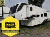 Sleeps 8 Slides 2 Length 36 ft 8 in Ext Width 8 ft 1 in Ext Height 12 ft 6 in Int Height 8 ft 5 in Interior Color Calli Linen Hitch Weight 2215 lbs GVWR 11700 lbs Dry Weight 9817 lbs Cargo Capacity 1883 lbs Fresh Water Capacity 52 gals Grey Water Capacity 82 gals Black Water Capacity 45 gals Tire Size ST235/85R16E Furnace BTU 35000 btu Number Of Bunks 3 Available Beds Olympic Queen Refrigerator Type GE 12V Refrigerator Size 10 cu ft Cooktop Burners 3 Shower Size 30" x 36" Number of Awnings 1 LP Tank Capacity 30 lbs Water Heater Type On Demand AC BTU 15000 btu TV Info LR 4K Ultra LED HD Smart TV Awning Info 19' Electric w/Integrated LED Lights Axle Count 2 Washer/Dryer Available Yes Number of LP Tanks 2 Shower Type Standard Electrical Service 50 amp Similar Floorplans