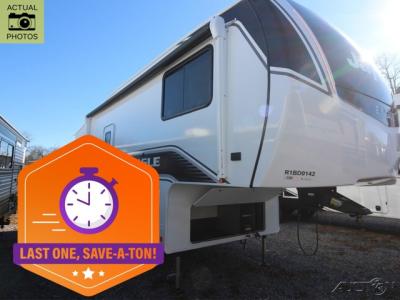 Sleeps 2 Slides 1 Length 29 ft 4 in Ext Width 8 ft 1 in Ext Height 13 ft Int Height 8 ft 5 in Interior Color Calli Linen Hitch Weight 1640 lbs GVWR 9750 lbs Dry Weight 8000 lbs Cargo Capacity 1750 lbs Fresh Water Capacity 52 gals Grey Water Capacity 82 gals Black Water Capacity 45 gals Tire Size ST225/75R15E Furnace BTU 35000 btu Available Beds Olympic Queen Refrigerator Type GE 12V Refrigerator Size 10 cu ft Shower Size 30" x 36" Number of Awnings 1 LP Tank Capacity 30 lbs Water Heater Type On Demand AC BTU 15000 btu TV Info LR 4K Ultra LED HD Smart TV Awning Info 19' Electric w/Integrated LED Lights Axle Count 2 Washer/Dryer Available Yes Number of LP Tanks 2 Shower Type Standard Electrical Service 50 amp Similar Fifth Wheel Floorplans