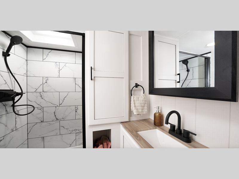Sleeps 5 Slides 3 Length 33 ft 9 in Ext Width 8 ft 1 in Ext Height 12 ft 3 in Int Height 8 ft 5 in Interior Color Calli Linen Hitch Weight 1650 lbs GVWR 10900 lbs Dry Weight 9205 lbs Cargo Capacity 1695 lbs Fresh Water Capacity 52 gals Grey Water Capacity 82 gals Black Water Capacity 45 gals Tire Size ST225/75R15E Furnace BTU 30000 btu Available Beds Queen Refrigerator Type 12V Refrigerator Size 8 cu ft Cooktop Burners 3 Number of Awnings 1 LP Tank Capacity 30 lbs Water Heater Type Tankless AC BTU 15000 btu TV Info LR 40" 4K Ultra LED HD Smart TV Awning Info 15' Power w/LED Lighting Axle Count 2 Number of LP Tanks 2 Shower Type Standard Electrical Service 50 amp Solar Wattage 200 watts Similar Floorplans