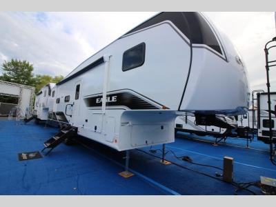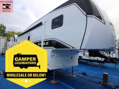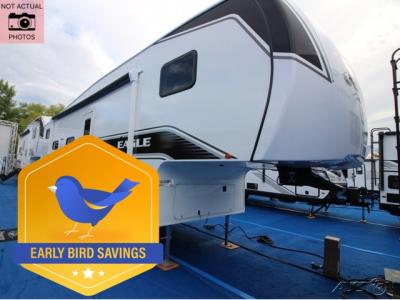 With any Eagle SLE fifth wheel by Jayco, you will enjoy a lighter tow weight, high-end finishes, and the same quality construction you've come to expect from Jayco! There is an Alpha Ply TPO roof membrane, a fully enclosed and heated underbelly, plus Stronghold VBL walls for added durability. There is also a rear 2" towing receiver outside, along with metal slam latch baggage doors, MORryde Step Above entry steps, and a Winegard Air 360 antenna with router prep if you want to stay connected as you camp. Once inside you'll enjoy the handcrafted door/drawer fronts, shower skylight, and residential vinyl flooring throughout with no carpet for an easier clean. The on-demand water heater, 30K BTU furnace, and 15K BTU "Whisper Quiet" A/C will ensure your comfort, and the Overland 1 Solar Package will provide off-grid capabilities!