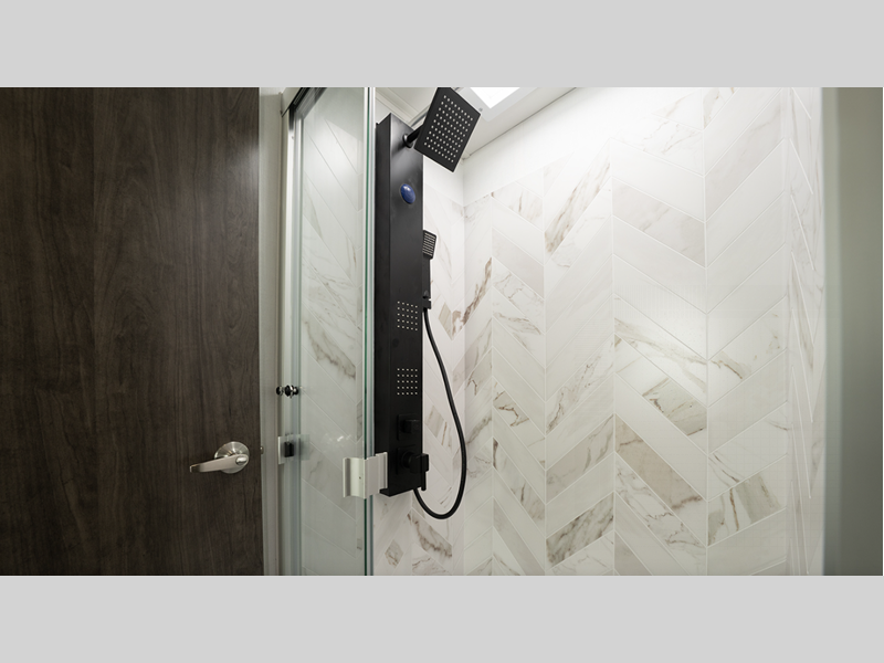 Each model includes a new Winegard 2.0 Wi-Fi/4G antenna and an LED HD Smart TV in the living room to wash away those rainy day blues. The full-body paint options are sure to turn heads, and you'll love the panoramic window with a shade in the front cap. The interior will have you feeling right at home with LED-lit hardwood fascia, hardwood cabinet doors, frameless windows, and decorative kitchen backsplash.Â