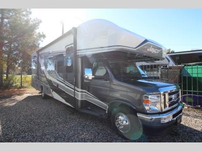 Sleeps 6 Slides 2 Length 32 ft 6 in Ext Width 8 ft 4 in Ext Height 11 ft 8 in Int Height 7 ft Interior Color Modern Farmhouse, Oakridge Exterior Color Standard Graphics, Full-Body Paint: Spring, Summer, Fall, Winter, Midnight Hitch Weight 7500 lbs GVWR 14500 lbs Fresh Water Capacity 47 gals Grey Water Capacity 41 gals Black Water Capacity 32 gals Tire Size LR225/75R16E Furnace BTU 30000 btu Generator 4000 Watt Fuel Type Gas Engine 7.3L V8 Chassis Ford E-450 Horsepower 325 hp Fuel Capacity 55 gals Wheelbase 223 in Number Of Bunks 1 Available Beds Queen Torque 450 ft-lb Refrigerator Type 12 Refrigerator Size 10 cu ft Cooktop Burners 3 Shower Size 30" x 36" Number of Awnings 1 LP Tank Capacity 16.5 gals Water Heater Capacity 6 gal Water Heater Type Gas/Electric DSI AC BTU 15000 btu Basement Storage 55 cu. ft. TV Info LR LED HD Smart TV Awning Info 16' Electric with LED Lights Gross Combined Weight 22000 lbs Shower Type Standard Electrical Service 30 amp Similar Motor Home Class C Floorplans