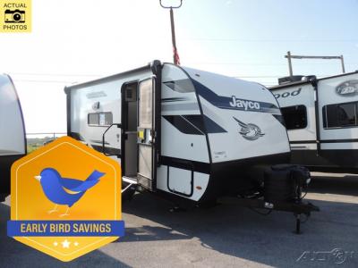 With any Jay Feather Air travel trailer by Jayco, you will enjoy lightweight towing and a variety of features to make each camping trip count! The Climate Shield insulation system helps by keeping you comfortable even in extreme weather conditions, and the Rock Solid jacks create a firm, steady foundation so your trailer feels solid underfoot and an easy setup. A rear roof ladder lets you easily clean the top of your Magnum Truss roof, and the 2" receiver will be perfect for your bike rack. The Overland 1 Solar Package with a 200W solar panel and 30-amp controller will provide off-grid capabilities, or you can choose the optional Overland 2 Solar Package with two panels instead! Each Jay Feather Air includes seamless countertops throughout, along with stainless steel sinks, decorative backsplash, and roller shades with a radiant barrier backer to help keep the sun's rays out.Â