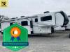 Sleeps 4 Slides 3 Length 36 ft Ext Width 8 ft 6 in Ext Height 13 ft 4 in Int Height 8 ft 6 in Interior Color Modern Farmhouse Exterior Color Mineral, Pearl, Smoke Hitch Weight 2570 lbs GVWR 16000 lbs Dry Weight 12875 lbs Cargo Capacity 3125 lbs Fresh Water Capacity 75 gals Grey Water Capacity 87 gals Black Water Capacity 50 gals Tire Size 215/75R17.5"H Furnace BTU 40000 btu Available Beds King Refrigerator Type GE Residential Refrigerator Size 21 cu ft Cooktop Burners 4 Number of Awnings 2 LP Tank Capacity 40 lbs. Water Heater Capacity 16 gal Water Heater Type Gas/Electric DSI AC BTU 30000 btu TV Info LR 50" 4K Smart LED HDTV, BR 32" 4K Smart TV Awning Info 10' and 16' Electric w/Integrated LED Lights Axle Count 2 Washer/Dryer Available Yes Number of LP Tanks 3 Shower Type Walk-In Shower Similar Floorplans