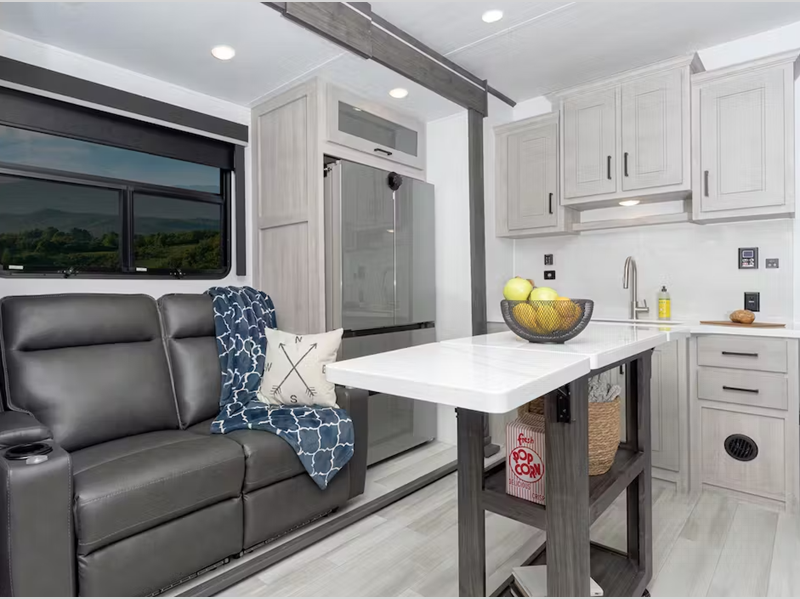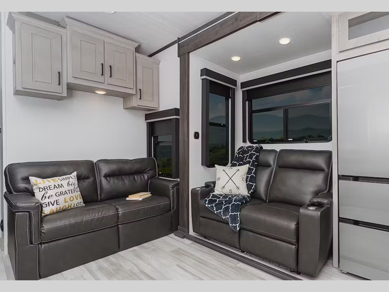 - Residential-style furniture w/ heated seats, LED lights, massage, and 110v/USB ports