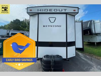 With any Hideout Cottage destination trailer by Keystone, you will experience comfort at every turn! There is Dura-floor construction, an AlphaPly TPO roof membrane, and tinted Solar Cool 4 mil. safety glass windows to name a few durable construction materials. An exterior shower also comes standard, along with heavy duty stabilizer jacks and an XL entry assist handle to make your coming and going easier than ever. The interior of the Hideout Cottage will make you feel right at home with blackout night shades, an upgraded "waterfall" kitchen sink, full extension kitchen drawer glides, and a shower skylight for added standing room and natural light. Each model also features Furrion backup camera prep, Tire Linc prep, plus washer and dryer prep, allowing you to further customize your trailer to fit your needs!
