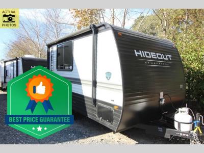 Open your horizons with the Hideout Sport Single Axle travel trailers by Keystone. They are compact, convenient, and lightweight; everything you're looking for in an RV! Each model features an aluminum exterior, tinted safety glass windows, and a Super Flex TPO roof membrane for added durability. The interior includes blackout night shades for added privacy and solid wood doors and drawers that will give a more at-home touch. The Girard tankless water heater is a feature you won't want to camp without, and the LED lighting will keep your space bright and open!