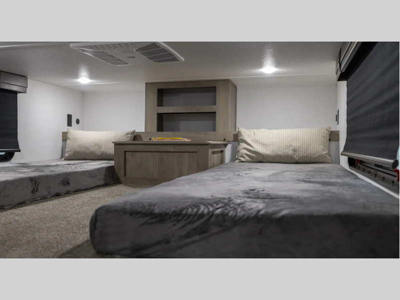 Nothing is better suited for family fun than these units with a long list of standard features. The enclosed Darco wrapped underbelly will help extend your camping season and the aluminum solid trip step will provide a sturdy entrance into your camper. Inside, you'll enjoy Congoleum linoleum, night roller shades, LED lighting, and many more comforts.Â